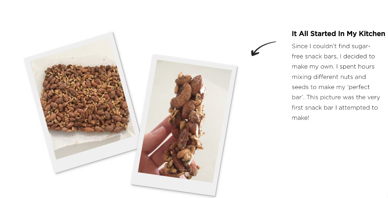 “It all started in my kitchen. Since I couldn’t find sugar-free snack bars, I decided to make my own.”