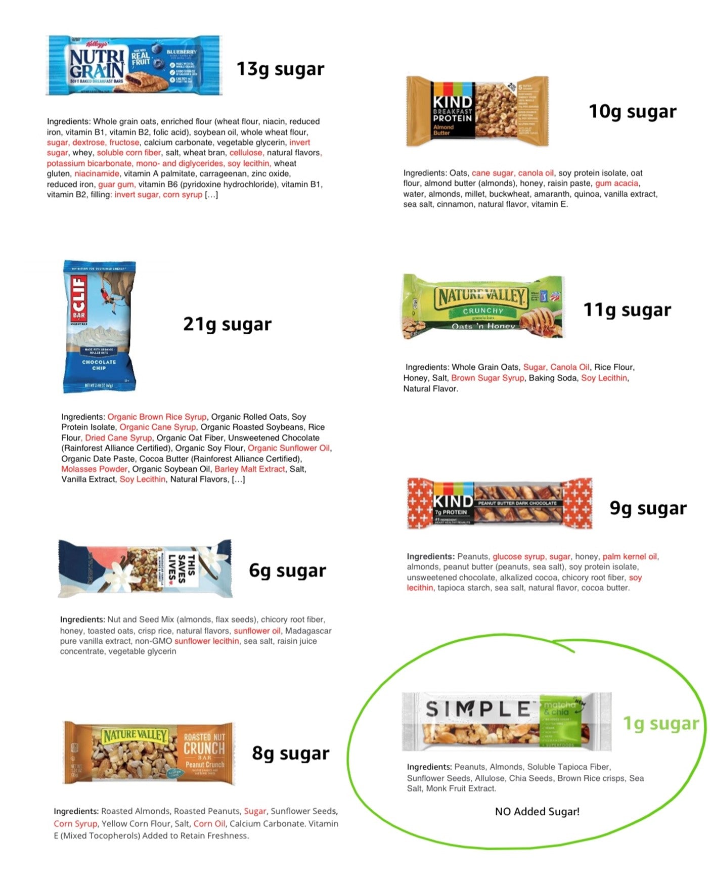 Displayed above are some of the healthiest considered snack bars, and clearly you can see that even then not every snack bar is built the same. At least not like us, not like SIMPLE.